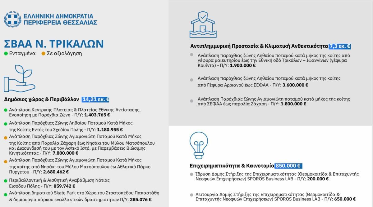 Ο συνολικός προϋπολογισμός των ΣΒΑΑ των 4 πρωτευουσών των ΠΕ Θεσσαλίας