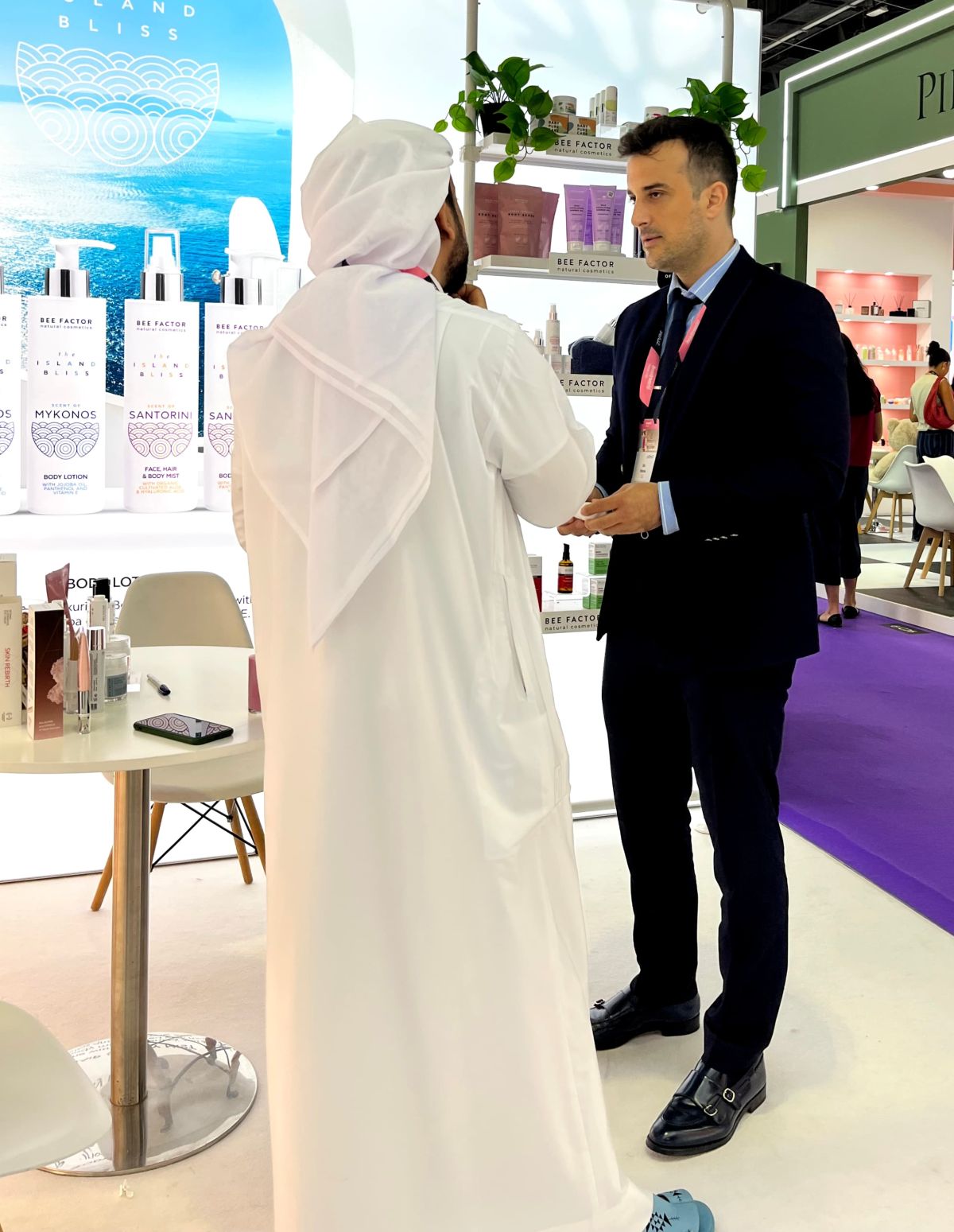 Η παρουσία της στην έκθεση όχι μόνο εξασφάλισε σημαντικές εμπορικές συμφωνίες, αλλά και οδήγησε σε νέες επαφές, αναθέρμανση υπαρχουσών συνεργασιών και επιπλέον επιχειρηματικές ευκαιρίες, ενισχύοντας τα εμπορικά της δίκτυα και την στρατηγική της ανάπτυξη στην περιοχή. Μετά τις επιτυχημένες συναντήσεις με διανομείς και αγοραστές, η Bee Factor πλέον ενισχύει δραστικά τη δραστηριότητά της στη Μέση Ανατολή, αξιοποιώντας τις σημαντικές συνεργασίες που προέκυψαν. Ιδιαίτερη τιμή για την εταιρεία αποτέλεσε η επίσκεψη του Πρέσβη της Ελλάδας στα Ηνωμένα Αραβικά Εμιράτα, κ. Στυλιανού Γαβρήλ, στο περίπτερο της Bee Factor. Ο Πρέσβης είχε θερμή και εποικοδομητική συζήτηση με τον CEO της εταιρείας, κ. Χρήστο Κωσταρέλο και την ιδιοτκήτρια κα Αλίκη Μακρή σχετικά με τις προοπτικές της ελληνικής βιομηχανίας καλλυντικών και την περαιτέρω ενίσχυση της ελληνικής παρουσίας στην αγορά της Μέσης Ανατολής.