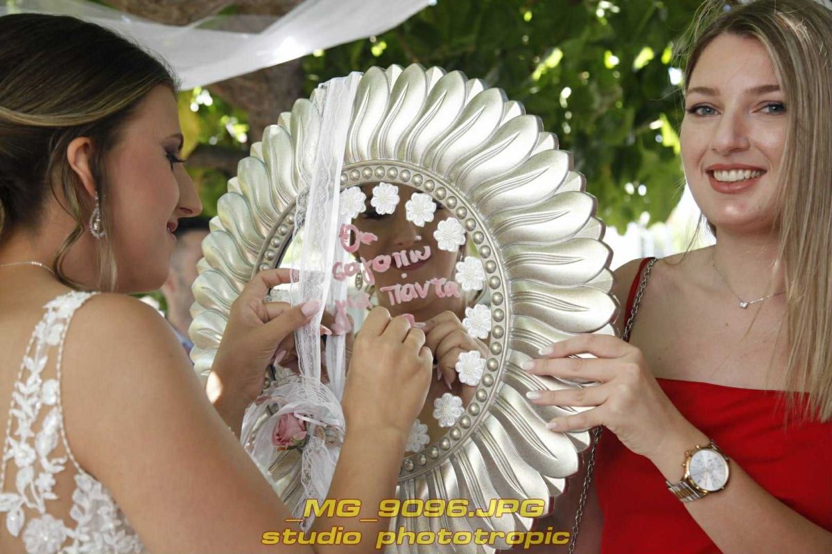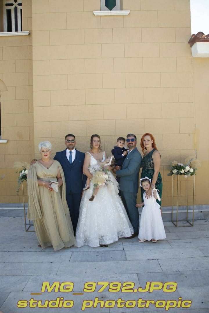Το διπλό μυστήριο γάμου & βάπτισης τελέστηκε στον Ιερό Ναό Ταξιαρχών Σχηματαρίου, παρουσία συγγενών και αγαπημένων φίλων, με κουμπάρα τη Λασκαρή Χάλα. Το ζευγάρι έλαμπε από χαρά και συγκίνηση, ενώ η τελετή κύλησε μέσα σε ένα κλίμα αγάπης και ευλογίας.